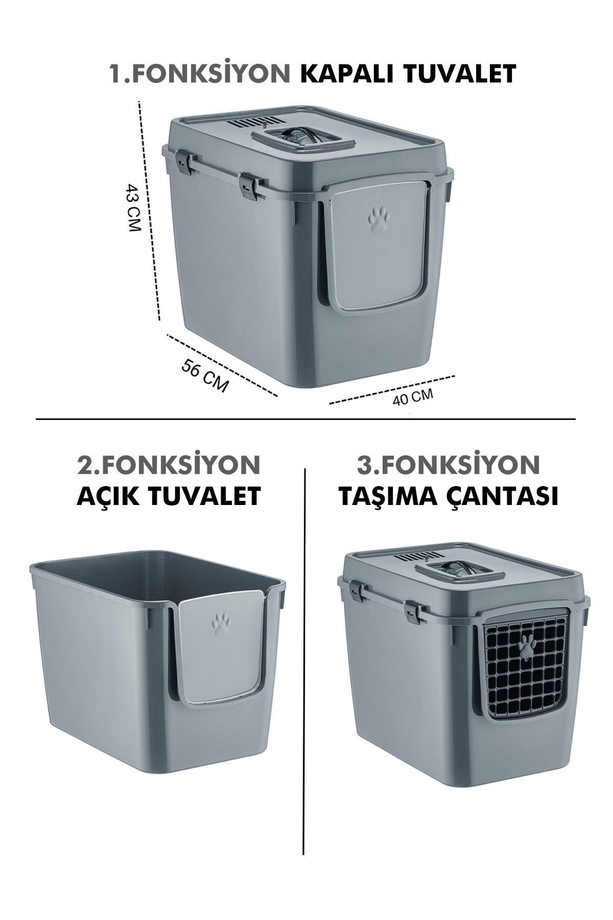 • Ürün 3 Fonksiyonlu olarak kullanılabilmektedir. 1.Fonksiyon Kapalı Kedi Tuvaleti 2. Fonksiyon Açık Kedi Tuvaleti 3.Fonksiyon Kedi ve Köpek Taşıma Çantası